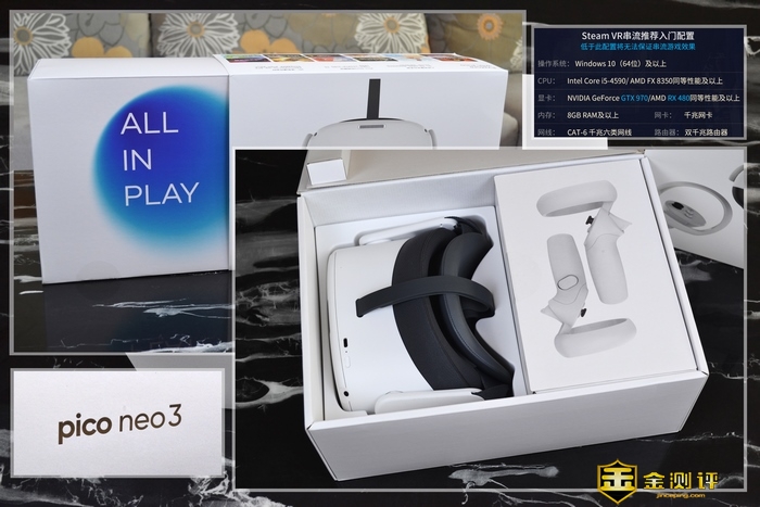 Pico Neo 3采用黑白经典配色,整体外观挺小巧的,便于收纳的同时,减重大大增强了佩戴舒适感。官宣的串流主机推荐配置,有兴趣的朋友可以膜拜一下。