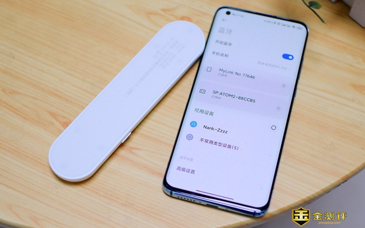 音箱的一侧有一枚开关按键,打开音箱后我们就可以使用手机连接了,它采用了蓝牙5.0的硬件,连接稳定、低功耗,低辐射,连接方式同我们连接蓝牙音箱或是蓝牙耳机一样。打开蓝牙搜索到Nank-Zzzz,点击并确认即可。