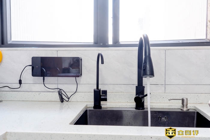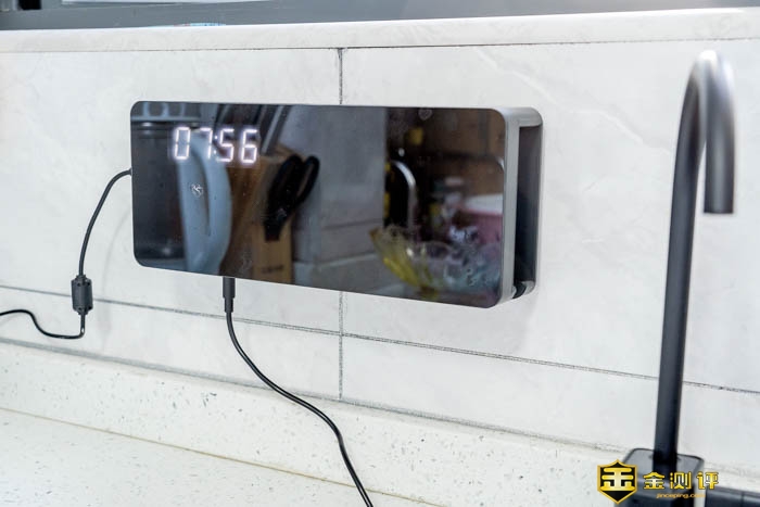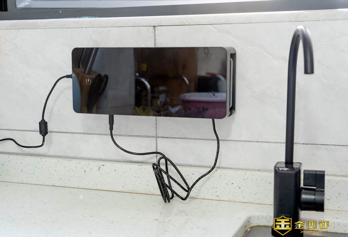 等胶稳定后,把主机往上一挂就安装好啦。看吧,它和我的厨房还是非常匹配的。刚巧的是我家的水龙头也是黑色的。