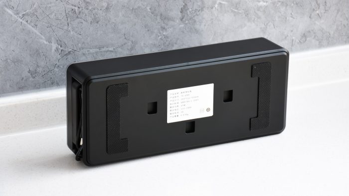 使用之前需要将这台清洗机简单安装一下,主机部分需要悬挂在厨台后方的墙面上,背部除了左右两边的橡胶垫之外,中间还有三个挂孔,和附赠的安装背夹上的卡扣完全吻合。