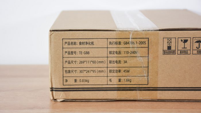 包装方面是一个普通的瓦楞纸箱子,没有图案印刷,侧边的表格罗列了这台产品的技术参数等等。