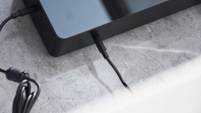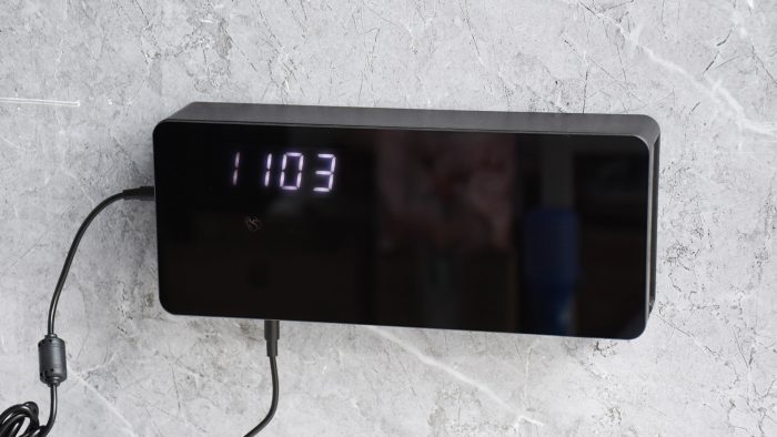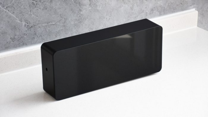 机身整体是一个黑色的长方体盒子,正面覆盖有一块完整的盖板,也可以称之为屏幕,侧边和背部是普通的磨砂质感。三围尺寸是269*111*60mm,比一块砖头稍大一圈的样子。