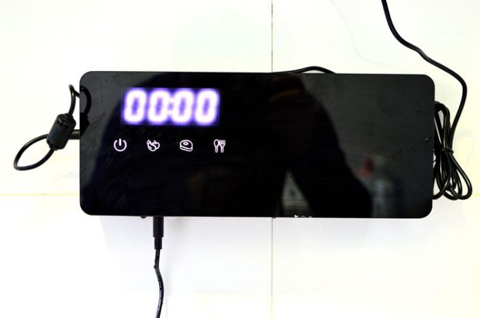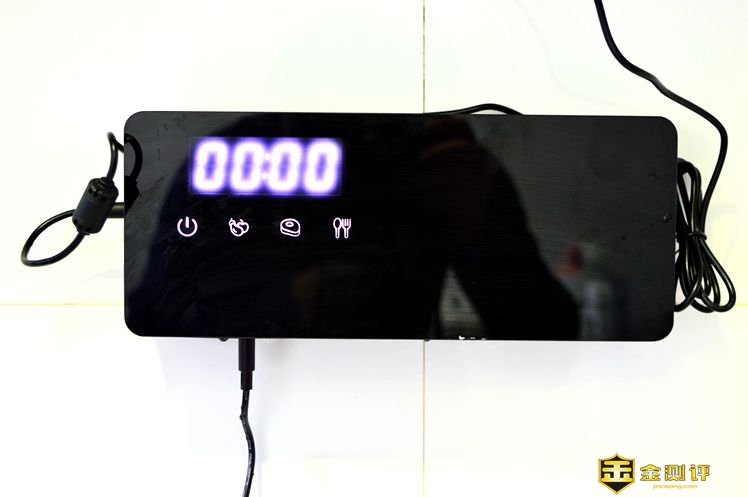 净化仓不用时可以收纳在主机当中,它的操作非常简单,显示屏上面有4个触控按钮,依次为电源键、蔬果、肉类、餐具选择键,可根据需要对应选择,之后再无其他操作了。