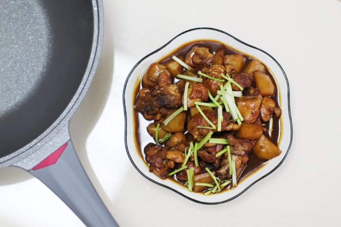 这时候就是检验锅的时候了,我曾经使用无数的锅做过这道菜,但从来没有一口锅可以做到一点不沾,而这口菲尼雅不沾锅就真的让我有点震惊了——丝毫不沾,而且一点不糊,出锅装盘如丝般顺滑。
