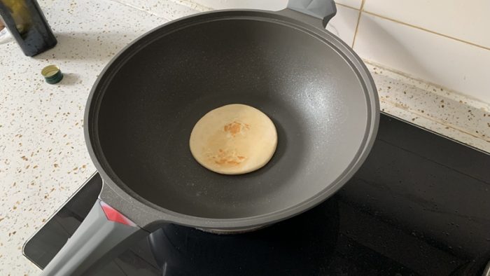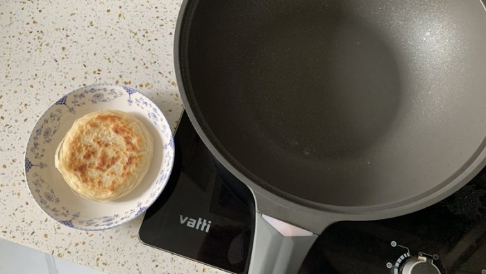 除了煎炒烹炸这一系列传统操作,其实对于一口好锅来说,最重要的就是能应对高温的“烙”。烙饼是一项技术活,除了要外酥里嫩,更要表面完好,这样才是一个好“饼”。所以对于锅的要求就格外高了,今天再来考验一下这口菲尼雅不沾锅吧。