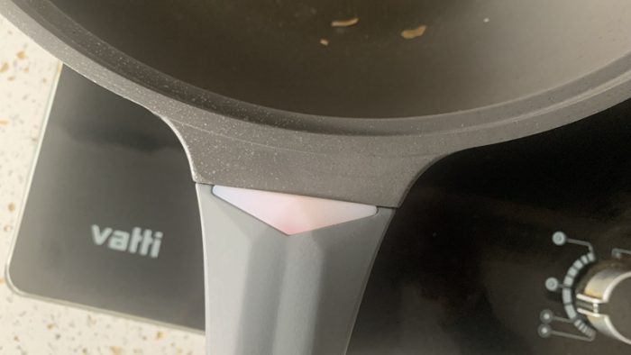 再来看看温度模块,已经基本上全部变白,说明锅内的温度已经很高了,但并没有油烟冒出来,除了不沾,这口锅的控烟效果也不错的。
