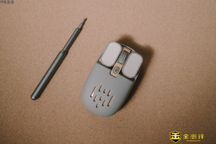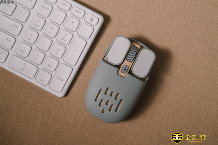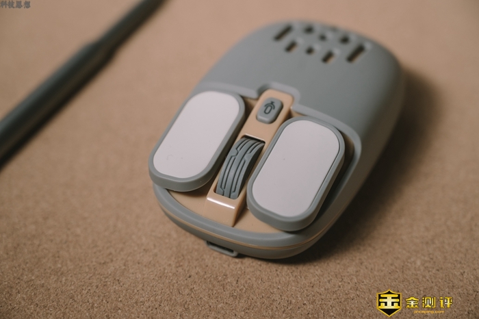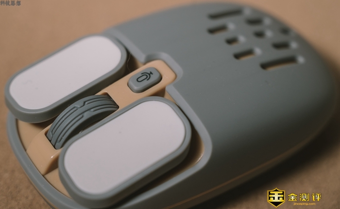 先来看一下这款鼠标的设计,咪鼠S5B的正面看起来很简单,我的这款配色叫做星空灰,另外还有浅米杏等配色,都很有复古范儿。这款鼠标整体结构设计很合理,操作起来比较舒服。