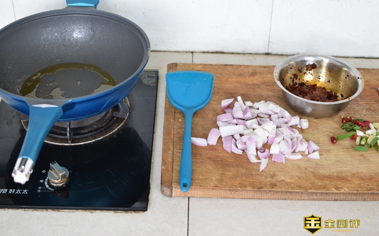 下面我来炒个洋葱炒牛肉,试试它实际使用到底效果如何吧,起锅、烧油...