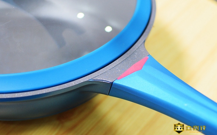 说实话,虽然相对于咱们普通的炒锅,这款并不便宜,但是从每个细节来看,别说是普通锅具各种可能会刮手的情况,就连把手、锅盖这些边边角角的处理都相当到位,整锅(带盖)1.5千克的重量,手感十足的舒适。锅把上方红色三角居然还有高温识别功能,随着锅温升高,红色胶条会逐渐褪色成白色,降温后恢复。
