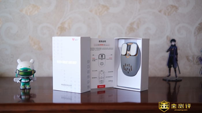 咪鼠智能语音鼠标S5B采用白色简约包装方案,正面赫然印着WORK SMART AND EASY,可见S5B定位在智能简化办公,包装内除说明书外,还附带一根Type C数据线,为用户给鼠标充电提供方便。
