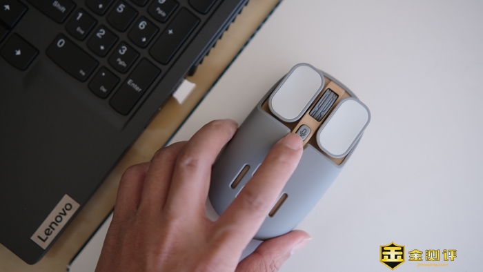 咪鼠S5B共有浅米杏和星空灰两种配色,我这款是星空灰,观感舒适耐看。不夸张地说,咪鼠S5B应该是我用过的设计特点最突出的一款鼠标。