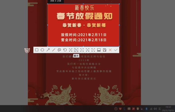 如果你看好某一个海报上的宣传文案,又嫌弃自己码字太劳累,那就直接利用Ctrl+Alt+X启动截图功能,框选后在下方菜单选择文本识别就可以喽。