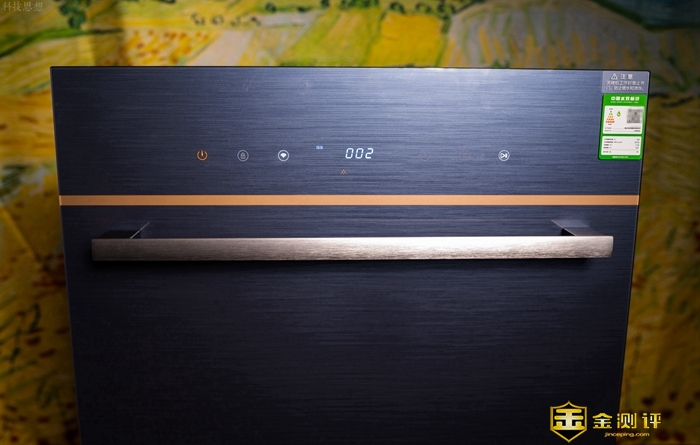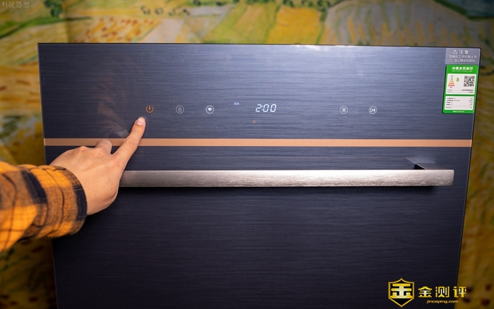 靠左部分的三枚按键是电源键、童锁键以及WiFi键,其中电源键当然就是用来开关键,这款洗碗机有记忆功能,开机后可以自动显示上次的模式。至于童锁键则是用来锁定所有按键的,避免小孩胡乱操作发生危险,而且洗碗机柜门关得也很近,小孩基本打不开。