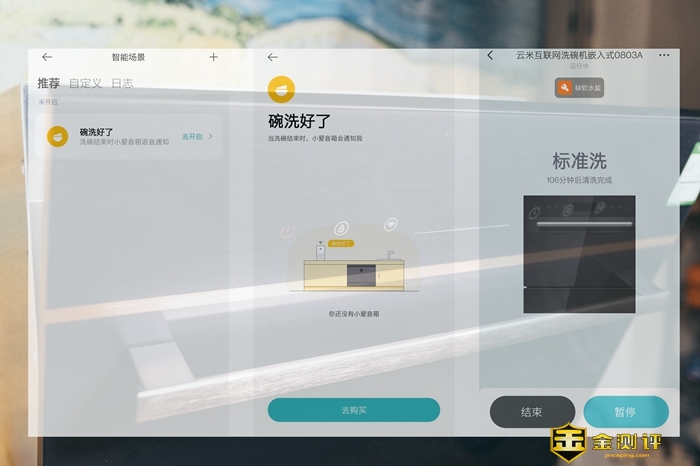 接入米家 APP 的云米AI洗碗机Iron A1还可以获得一些场景联动功能,比如默认的设置中就有一个洗碗完成后通过小爱音箱提醒,我们也可以根据实际需要选择不同的设置,像是洗碗结束后打开厨房灯之类的。