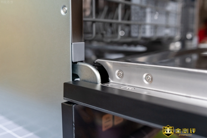 从洗碗机的侧面可以看到,正面的玻璃确实是真材实料镶上去的,而且厚度可观,既结实又安全。