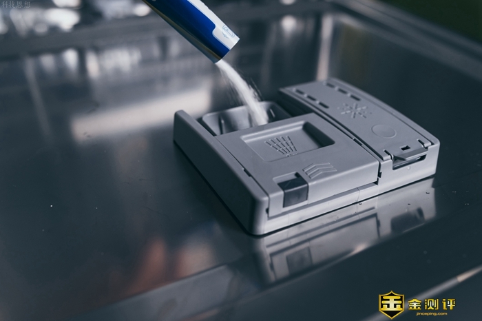 另外在使用洗碗机清洁凝珠的时候,也是直接把凝珠放在左侧洗碗粉的槽子里就可以了。在洗碗过程中,洗碗粉是用来去除油污的工具,而漂洗剂则可以提升烘干效果,洗碗的时候两者缺一不可。