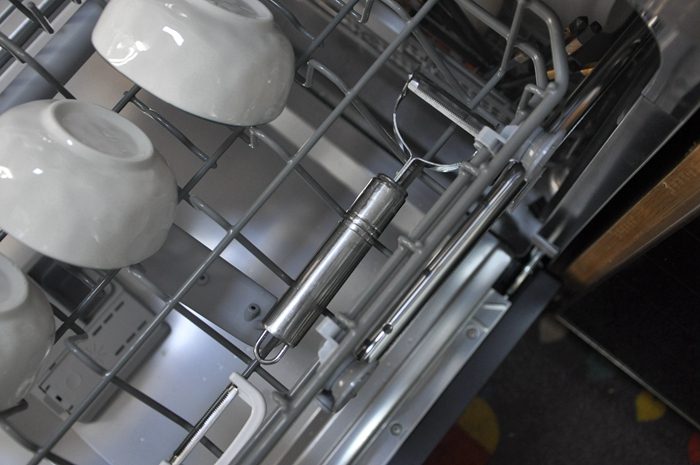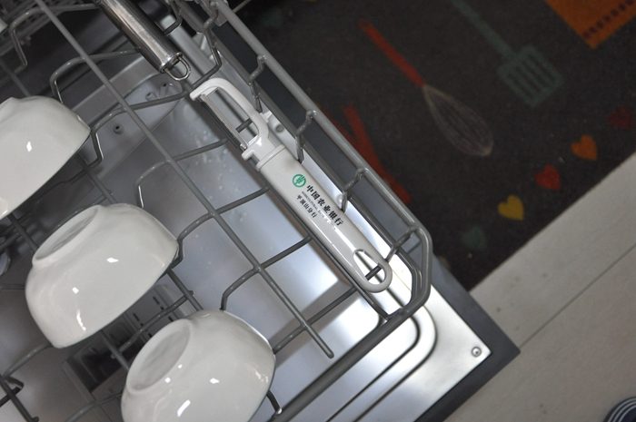 ▼再来看看上层碗篮里面的餐具,碗碟光亮如新。我差点忘了这个小东西,看到它时我确实非常吃惊,这两把削皮刀我用好几年了,从来没有认真清洗过,表面附着了很厚的污渍,事先我也没奢望它能洗多干净,看着效果,单凭这一点买它就不亏,说真的,我们手洗还真不一定能洗得如此干净。