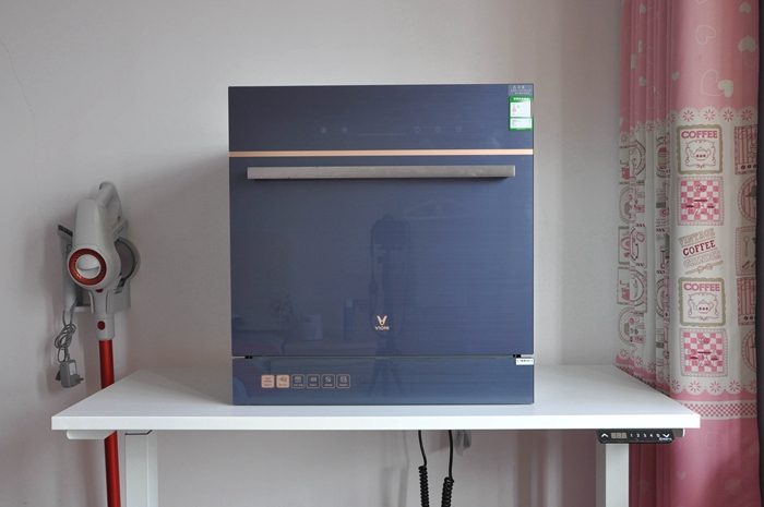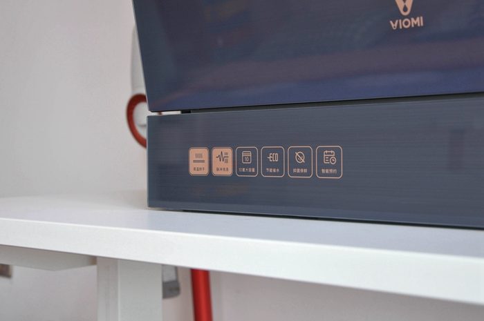 ▼外观上云米AI10套洗碗机lron A1还是非常漂亮的,正面是蓝钢材质的玻璃面板,看上去呈微蓝色,显得高端大气更具科技感,即便是沾染油污,洁净的表面也更容易清理。简单给大家介绍下尺寸吧,这款洗碗机宽595毫米,高627毫米,深520毫米,安装方式为嵌入式,橱柜建议开孔尺寸为宽560毫米,高605毫米,深520毫米,购买前大家先看看自家的橱柜是否可以嵌入安装哈。