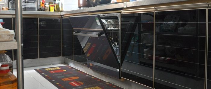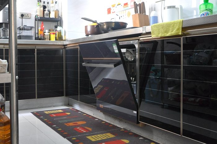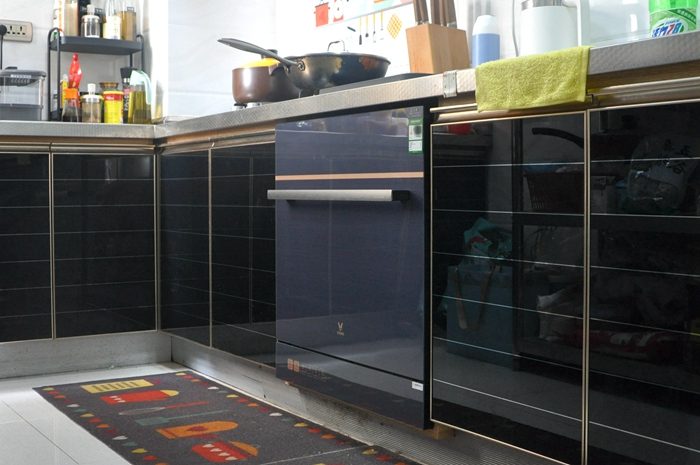 ▼这就是装好后的样子,洗碗机的柜门是微蓝色,和我家的黑金橱柜门搭配起来还算协调,这个颜值你喜欢吗?如果你家正在装修,建议按开孔尺寸留位置哦,那样装出来会更加漂亮。我家这个位置之前装的是嵌入式消毒柜,现在可以完美替换云米AI10套洗碗机 lron A1也很省心。