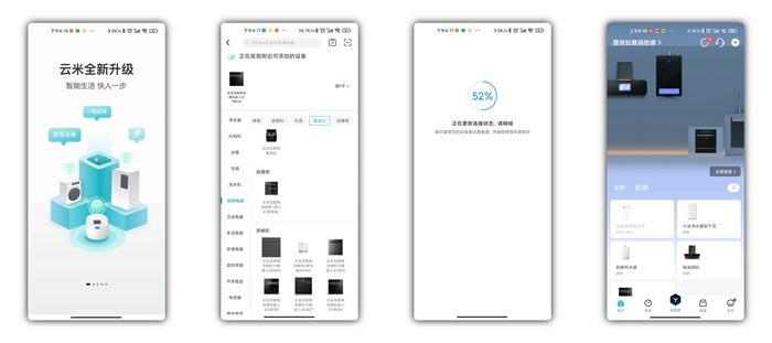 ▼安装好通电后就可以配网喽,首先应用商店搜索“云米商城”下载安装,接着按照说明书的步骤重置洗碗机的WiFi,然后点击搜索到的设备一步步添加就好,非常方便。如果给家中老年人安装,可以请安装师傅协助配网哦。