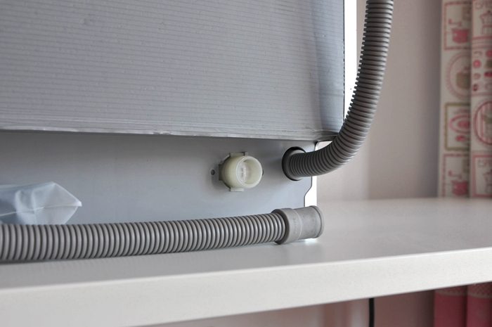 ▼电源线、进水管和排水管都位于机身背面,收到产品后会有专业师傅入户提供安装服务,大家只需拨打400电话预约安装就好。