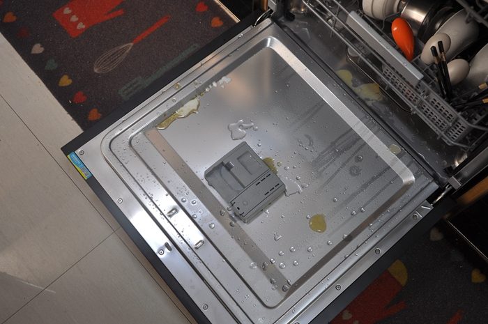 ▼下喷臂、过滤组件和软水器位于洗碗机内底部,初次使用最好加入软水盐以改善水质软硬度,平时清洗的食物残渣也可以通过过滤组件清理,可拆卸设计,清洗非常方便。