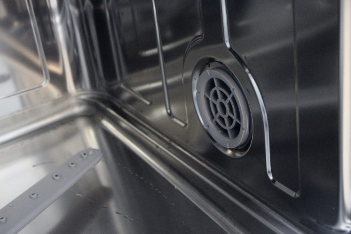 这款洗碗机两个热风烘干口呈对角线的位置布置在洗碗机的内壁,热风循环能够更加彻底的达到烘干的效果。