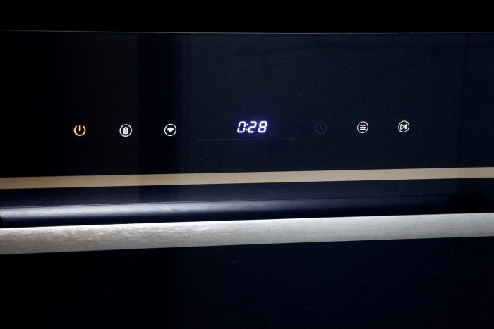 这款洗碗机它的外面板采用的是易洁蓝钢玻璃,这种玻璃设计风格,便于清洁的同时,也会让整款设计非常的具有时尚感。整体感觉类似于拉丝的设计,我会觉得时尚感的同时也会有科技体验。