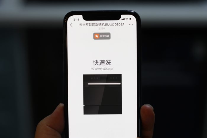 同样这款洗碗机能够和我们的云米App进行连接,也可以看到界面上有WiFi的标志,通过连接我们的云米APP,轻松的通过手机来操控我们的洗碗机。