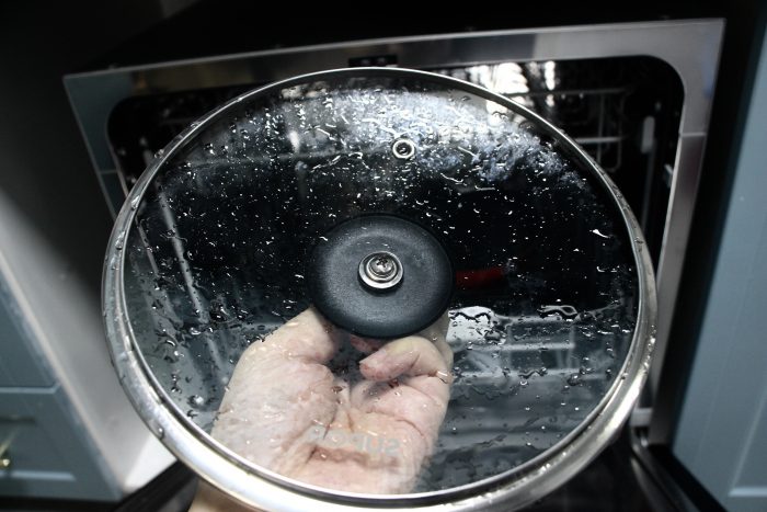 你会看到除了舱内完全烘干之外,我们的餐具也被清洗的干干净净。放在我们碗筷槽中的勺子以及木筷被清洗的非常的干净。可以说对于洗碗机来说,你可以根据不同的油污程度,选择不同的模式,来达到清洗的目的。更为主要的是这一款洗碗机它还提供了消毒洗,在75℃的高温下,能够轻易的灭杀99.9%的常见病菌和细菌,我这那这对于家庭有宝宝的用户来说非常的方便。