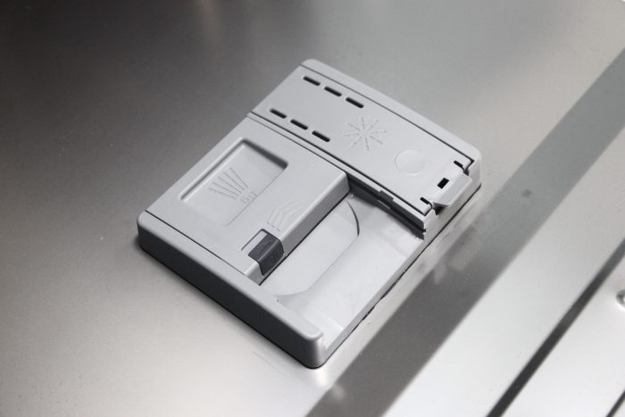 在密封门的内层,我们能够看到洗碗粉和洗碗液的耗材添加口。一般来说洗涤剂的头发能够达到一次头发,使用半个多月的时间。