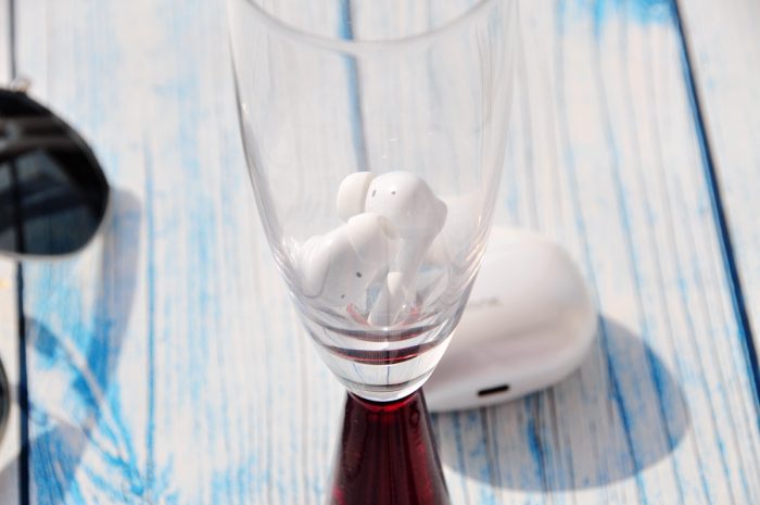 取出充电仓和配件,来一张“全家福”吧,充电仓圆润的椭圆形设计,犹如化妆盒一样具有艺术气息。