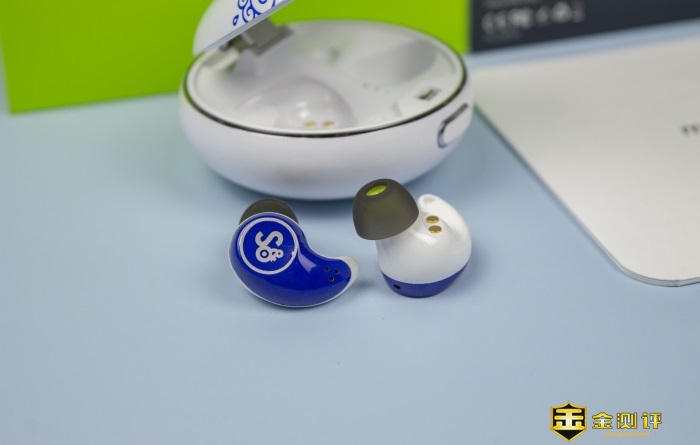 耳机外腔体采用了国风青花蓝的喷涂设计,整体观感细腻光滑,视觉上洁净圆润,有着比较好的质感,搭配蓝色机身比较契合呼应耳机的青花瓷主题。