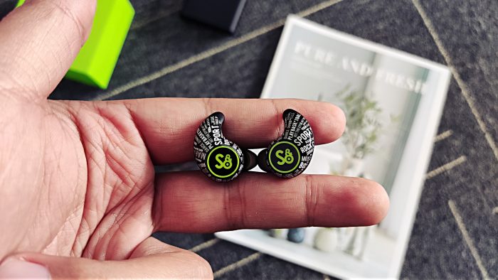 操作方面,mifo魔浪S耳机采用的是触控操作方式,触控区域位于耳机外侧绿色圆环内,操作十分灵敏。不过需要注意的是,圆形触控区域内的“S&O”标志并非产品的logo,而是“SPORT&OUTDO”的缩写,与充电盒相互呼应。