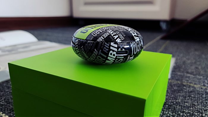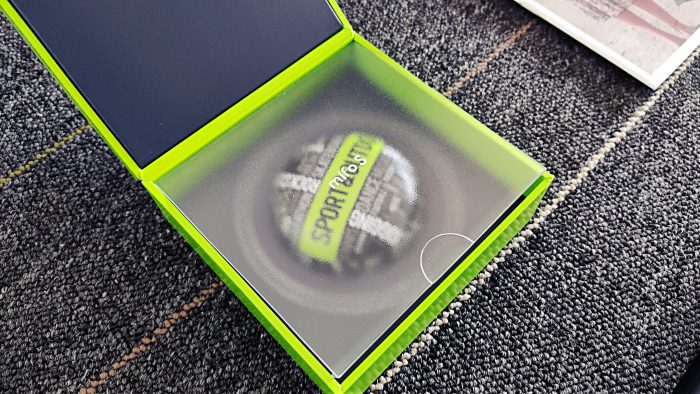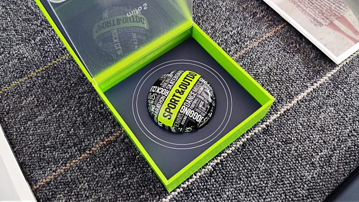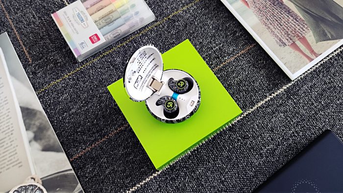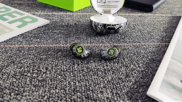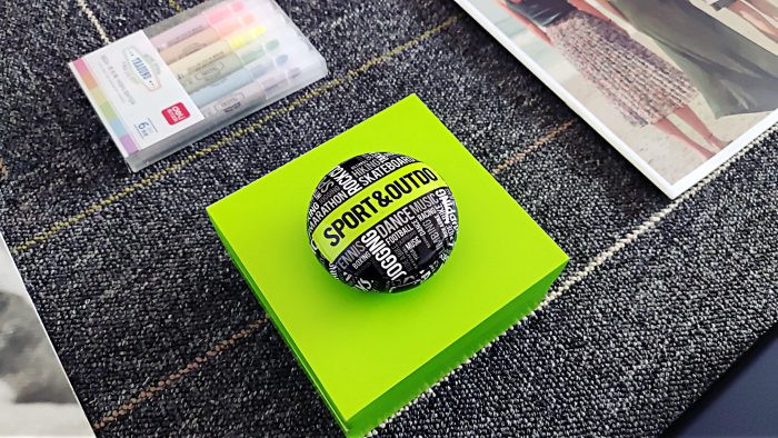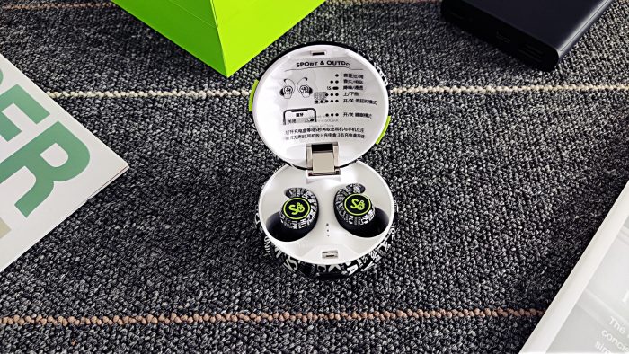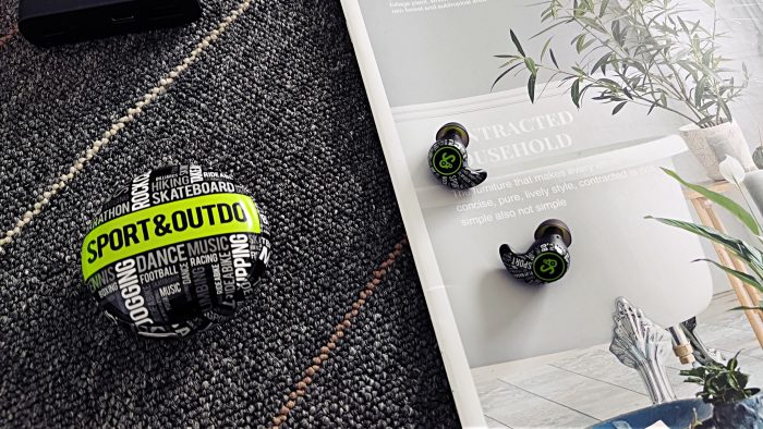 而且,充电盒上的字母纹设计也是非常走心的。中间最为显著的位置为“SPORT&OUTDO”,代表着运动与超越;而周围也都是与运动有关的单词,如FOOTBALL(足球)、HIKING(徒步旅行)、RIDE A BIKE(骑行)等等。