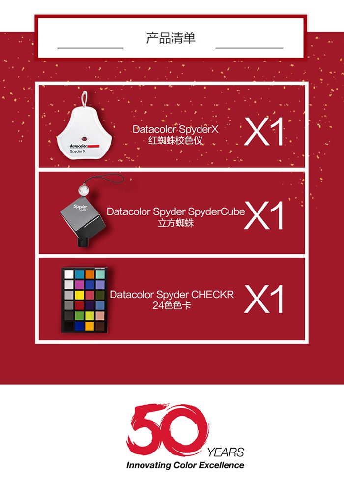 Datacolor Spyder X红蜘蛛X50周年摄影套箱(含Datacolor spyder x红蜘蛛x、校色24色卡、立方蜘蛛)