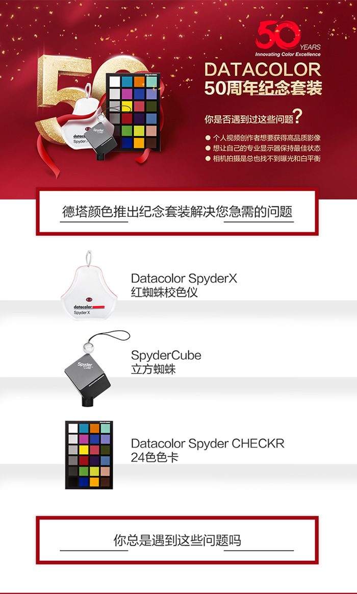 金测评希望你客观、专业、场景化的真实体验分享,而且众测报告必须是100%原创,抄袭将永久拉入黑名单。 本次为大家带来“Datacolor Spyder X红蜘蛛X50周年摄影套箱,包含Datacolor spyder x红蜘蛛x、校色24色卡、立方蜘蛛”的试用,一起来看看吧。
