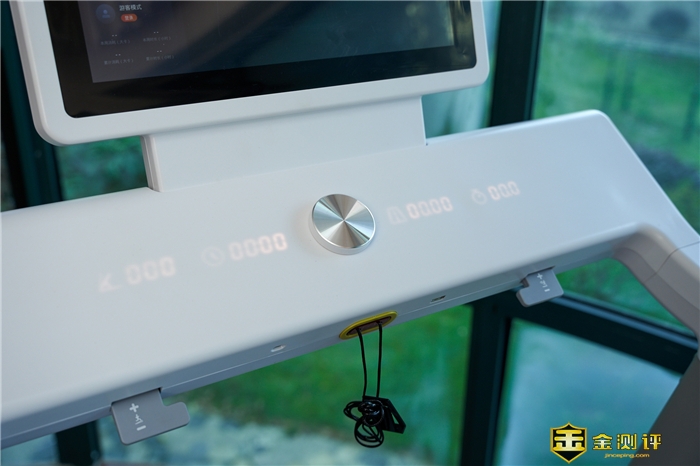 跑步机上部的横杆是控制区,控制区是一体式的塑料外壳,虽然不是屏幕,但是赤兔在这里利用橙色LCD光线透出效果,把塑料面板“变成”了屏幕,效果不错。这样做还有一个好处就是无缝,防水又防尘,清洁维护更简便。