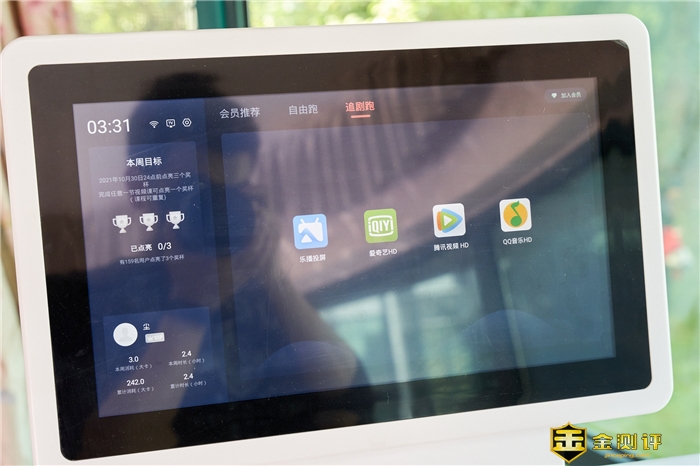 这台赤兔Air跑步机最明显的特征就是自带的超大屏幕,还能触摸操作呐。
