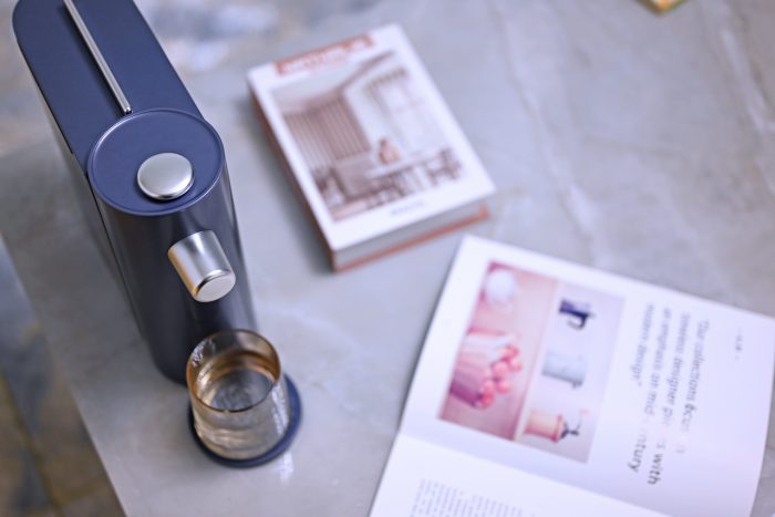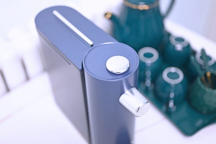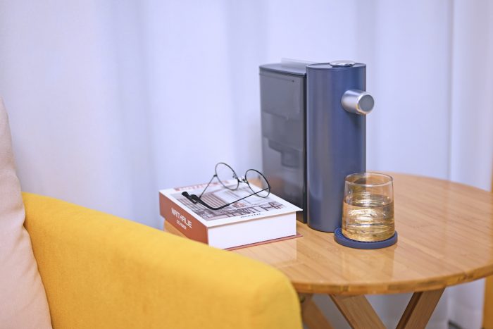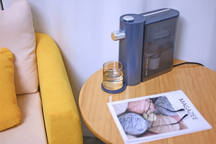 第一眼看到这款饮水机给我的感觉就是轻奢,静谧蓝的外观看着很高档,无论是放在办公桌上还是餐桌上都很搭,34cm*9.5cm*260cm的身材比较修长,占地面积很小。