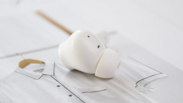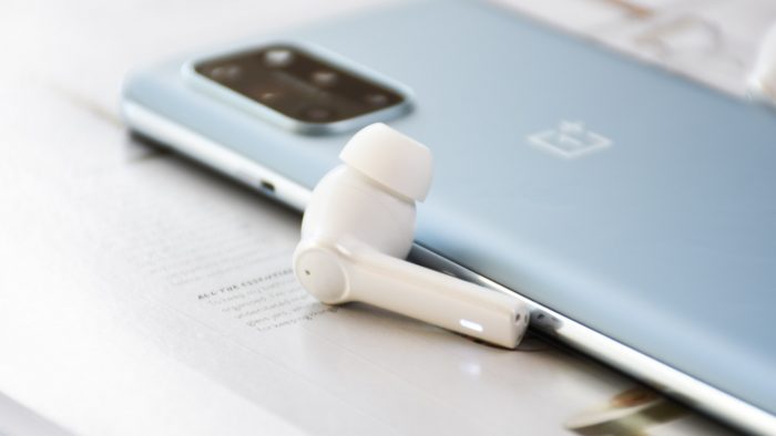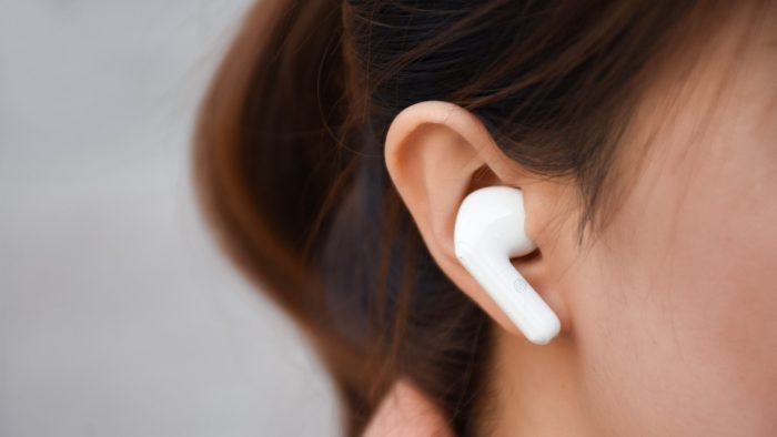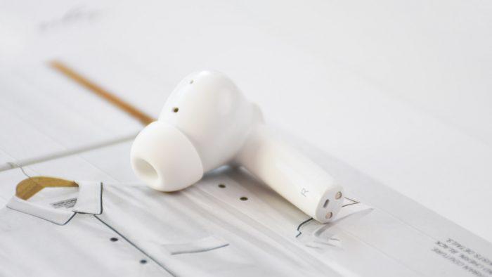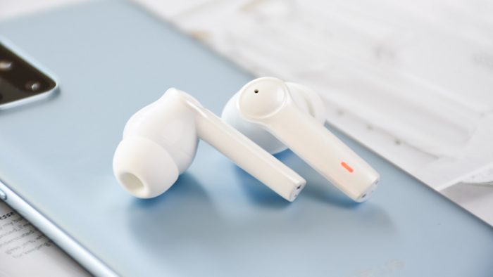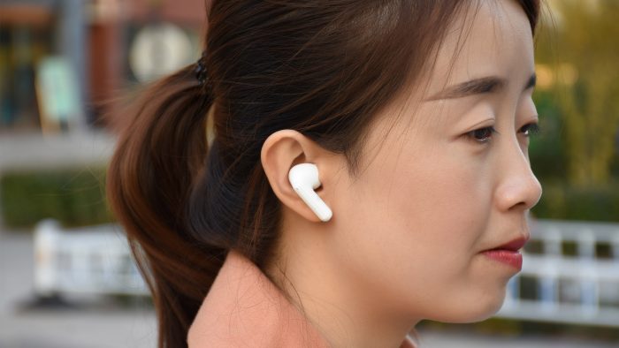 为了照顾到佩带体验,南卡A2采用轻量化的设计,单只耳机只有4.1克的重量。正常佩带姿势下,倾斜的入耳部分顺势深度耳道,圆润的腔体内侧与耳屏相抵,加之耳机柄部分起到支撑作用,整体佩带起来非常稳固,长时间佩戴也不会导致耳朵酸困肿胀,很少会出现明显的压迫感。入耳式的结构也使得耳机佩带更牢固,相比AirPods来说不易脱落。