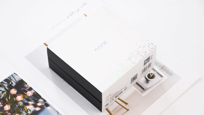 包装方面延续了南卡最近惯用的设计风格,白色的卡纸封套正面印有南卡的Logo,采用烫银工艺,下方还有零星的小碎点作为装饰,有些音符跳动的感觉。
