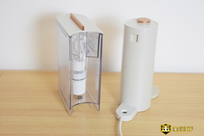 杯垫的组装方式是这款莱卡KE9010直饮过滤台式净饮机的亮点,摆脱了卡槽式的设计,转而采用了磁吸的连接方式,虽然没有卡槽设计的稳固,但磁吸设计多场景使用没有任何问题。