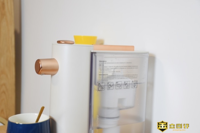 水箱盖位置设计有固定槽位,使用非常的方便。水箱侧面贴有产品的功能操作提示,和滤芯的激活步骤。再搭配说明书使用,小白也能够轻松上手组装使用。