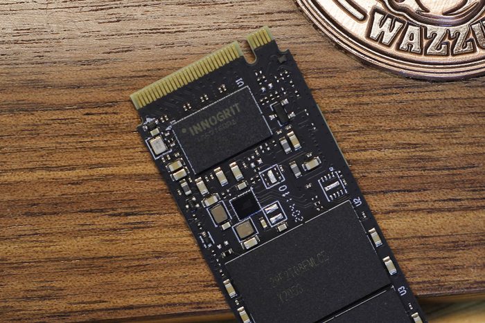 靠近接口位置的就是主控芯片,英韧IG5216, 它是一颗 基于28NM工艺和HMB技术的4通道PCIe3.0X4的主控,其实就是无外置DRAM缓存架构,砍掉这个缓存提高性价比。官方给的最大读取写入速度 是3400MB/s和3000MB/s。这个速度在PCIE3.0的SSD里是比较快的了,也几乎把PCIE3.0X4的速度发挥出来了,要知道PCIE3.0 X4的速率也才3938.4MB/s。3400MB/s 完全可以对标三星的980 1TB了,两者可是有近300元的差价,挺香的。