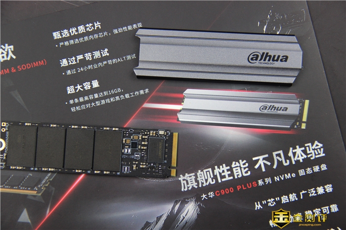 大华C900 PLUS配备了专门的全铝散热片,流线型设计非常前卫,两边沟壑打造出的立体感,增加散热面积同时也营造出简约美感,应对某些主板SSD标配散热片不足的尴尬,算是尽心尽力。