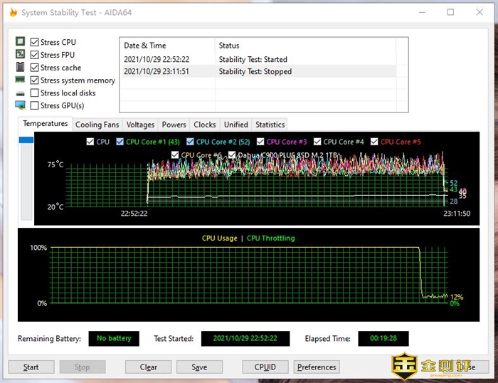 AIDA64进行长达近20min的拷机稳定性测试,C900 PLUS参与其中完全木有任何问题。
