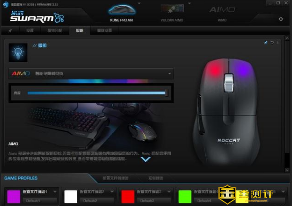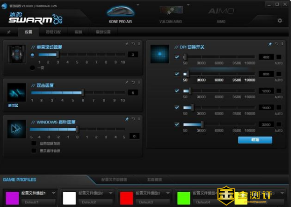 游戏鼠标可以从官网下载“ROCCAT Swarm应用,对刷新率、角度咬合、距离控制单元等参数进行设置,应用界面非常清晰。