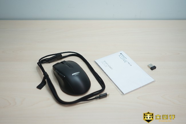 打开鼠标的包装盒,除了魔幻豹KONE PRO AIR鼠标无线职业版电竞鼠标主体还有一份快速使用指南、2.4Ghz无线接收器、一条1.5米充电线。