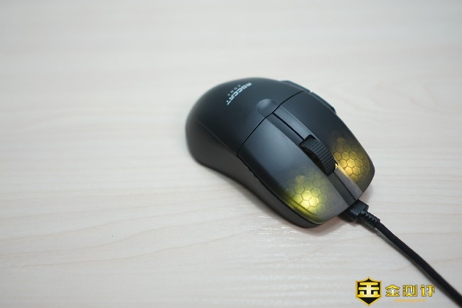 鼠标采用了TITAN WHEEL PRO 新泰坦滚轮系统,滚轮是固态铝,摩擦力更足不易打滑,滚动的阻尼适中也非常静音,发光RGB灯也增加了玩家光污染的需求。